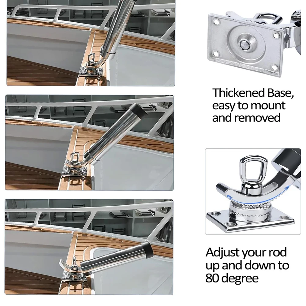 The Universal 360° Boat Fishing Rod Holder is designed for durability and versatility in marine environments. Constructed from 316 marine-grade stainless steel, it offers excellent corrosion resistance and long-lasting performance in saltwater conditions.